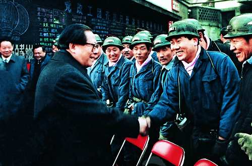 江泽民总书记接着在我局招待所召开了山西省著名劳动模范座谈会。煤炭战线的著名劳模傅昌旺、尚海涛,郝晓明、亢龙田、刘兴业,张腊梅和其他行业的劳模李双良、申纪兰、郭凤莲等,向总书记谈了他们的实践体会、工作建议。江总书记说,中国传统的节日春节快到了。每逢佳节倍思亲。我们到山西来,就是看望大家。他说,处处关心群众,事事依靠群众,一切为了群众,是我们党的根本宗旨和工作路线,也是我们的鲜明特色和政治优势.时代越前进,事业越发展,各级领导干部和广大党员越要牢记人民是真正英雄和胜利之本这个历史真理,越要诚心诚意为人民谋利益,这样我们建筑有中国特色的社会主义事业就会蓬蓬勃勃地发展。江泽民总书记说,山西煤炭工业很重要,商品煤占很大比例。没有煤,吃不了饭,没有煤,发不了电,也生产不了。山西煤对全国负有很大责任。他说,现在国有企业面临不少困难,党和政府非常了解和体谅,并时时放在心上。在发展社会主义市场经济中,国有企业特别是关系国计民生的大中型企业的实力只能增强,不能削弱,必须切实防止国有资产的流失。这是衡量我们经济体制改革成效的一个基本标志。全党上下对此一定要十分明确。搞好国有企业,必须进一步转换经营机制,调整结构,建立现代企业制度,同时也需要国家给予必要的扶持,更需要国有企业的广大职工同舟共济,充分发挥积极性和创造性。